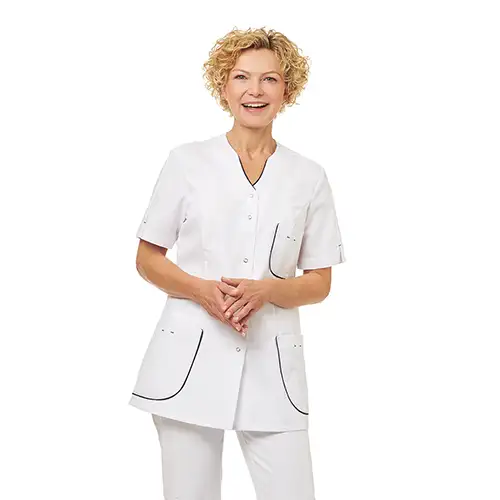 Unsere Kasacks bieten hohen Tragekomfort und ein gepflegtes Erscheinungsbild im medizinischen Alltag. Sie sind leicht, atmungsaktiv und in verschiedenen Farben und Schnitten erhältlich. Pflegeleichte Materialien und funktionale Details machen diese Ärztekittel-Alternative ideal für Pflege, Praxis und Therapie.